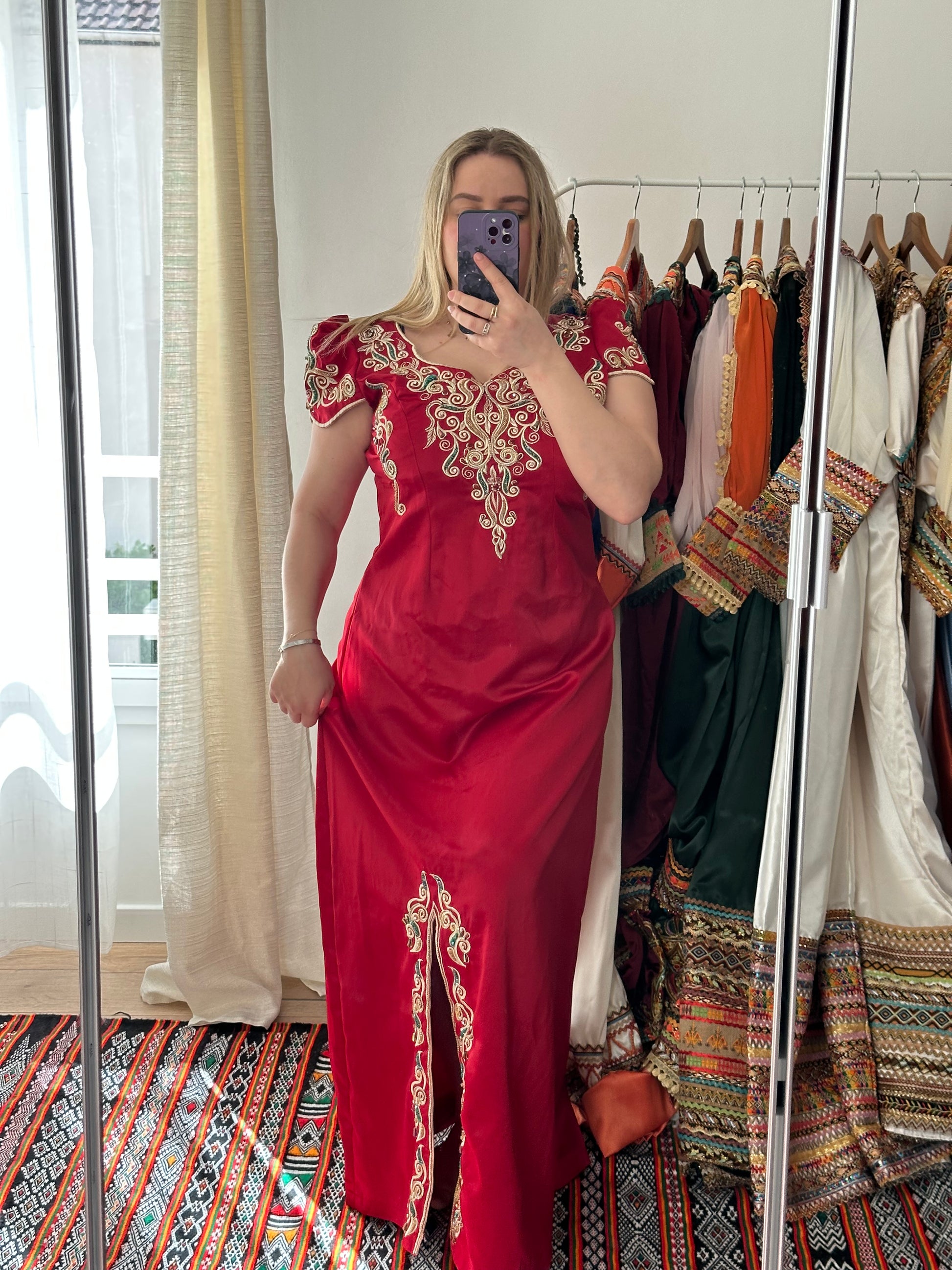 Robe en satin français perlĂ©e entièrement Ă la mainsÂ