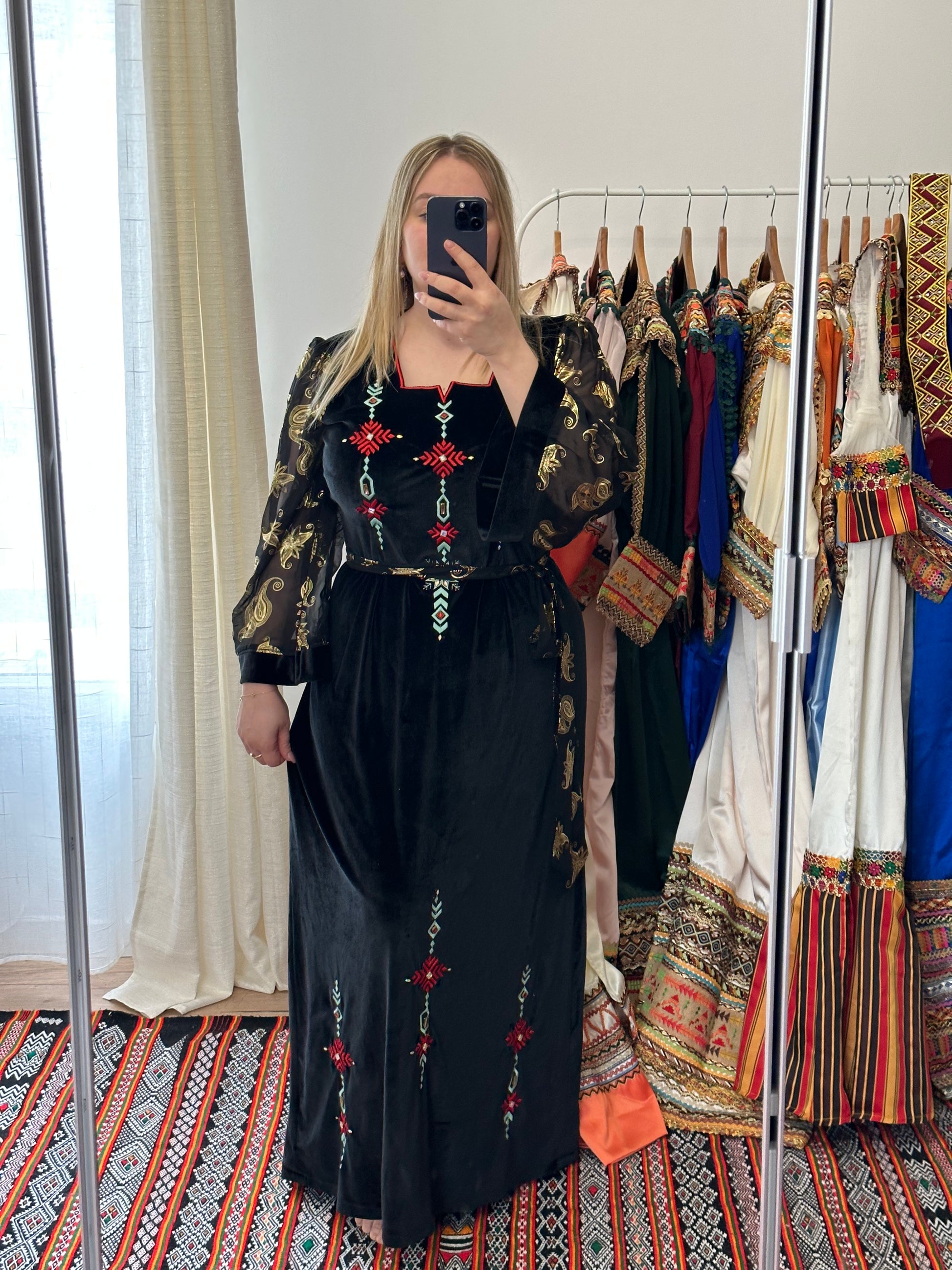 Robe en tissu velours ,brodĂ©e et perlĂ©e.Â